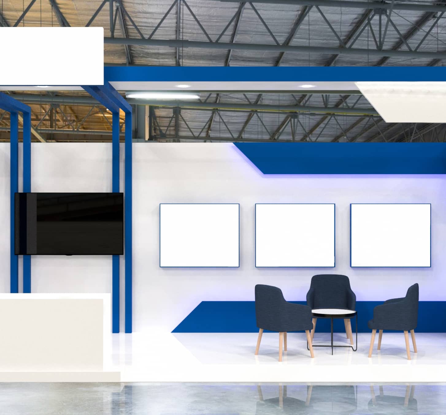 Custom booth layout and design that reflects your brand identity and business goals.